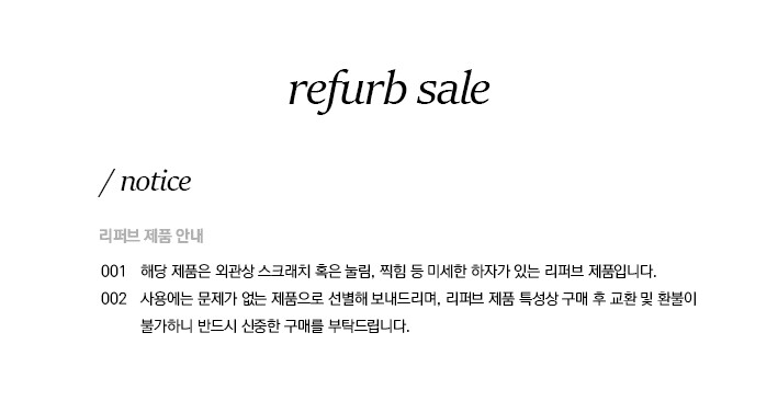 해당 리퍼브 제품들은 스트랩 끈에 랜덤으로 오염이 있는 B급 제품으로, 50% 할인하여 판매합니다.